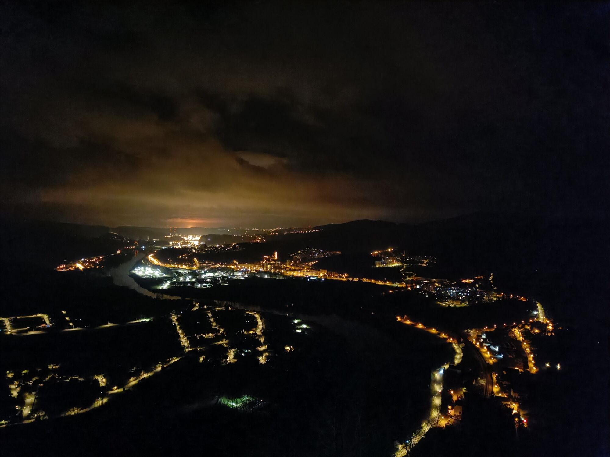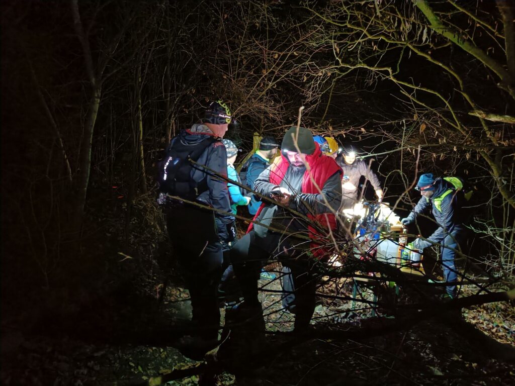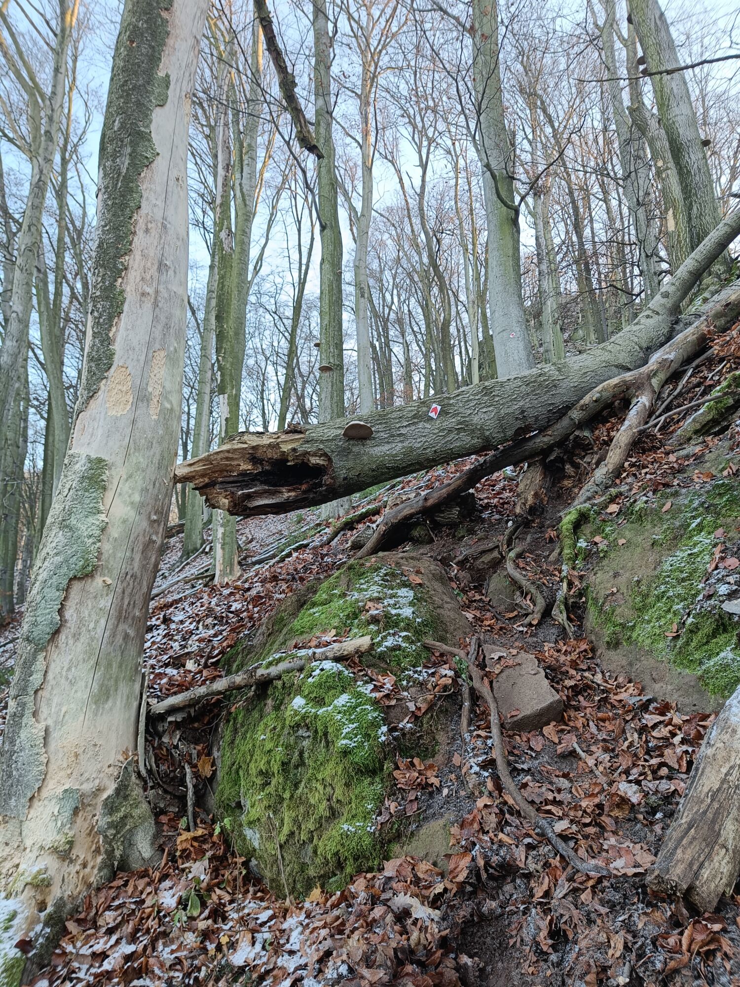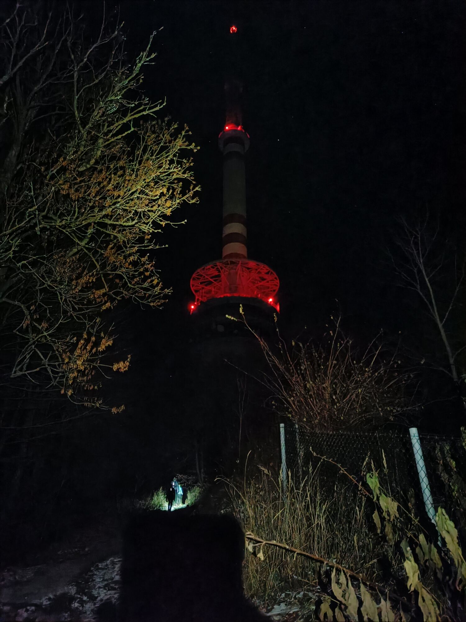 Olaf to odstartoval ve 23:20. A rovnou funíme do kopce, oblečení jsem trochu přehnal. Sklon jako prase, přelézání stromů, výživný kilák prostě. Dál se chodí nahoru, dolů, nahoru. Vracečka Kozí vrch, kde to dolů i lehce klouzalo. Na rozhledně Erbenova vyhlídka překvapivě není kontrola, ale stejně si vystoupám nahoru.
