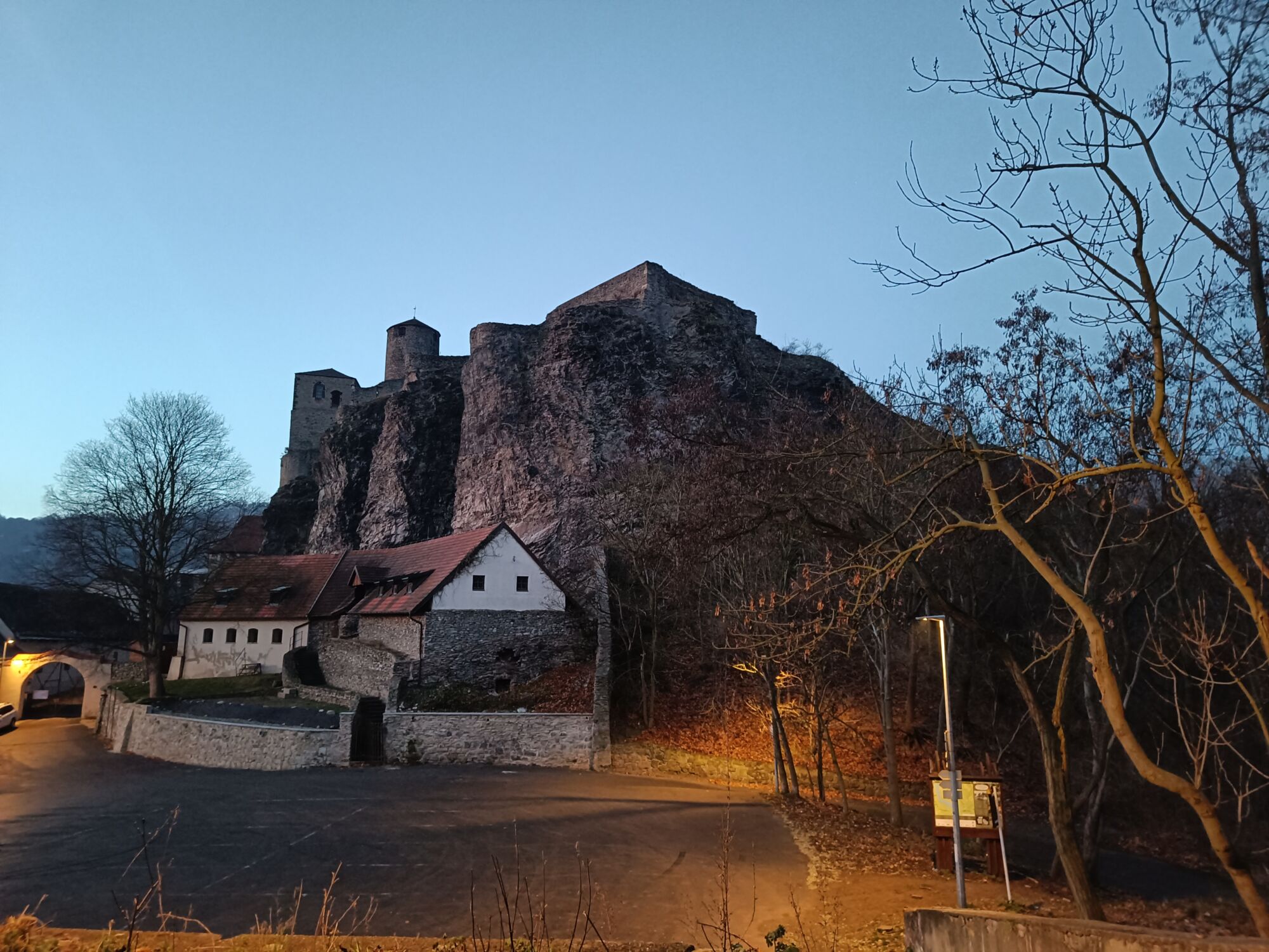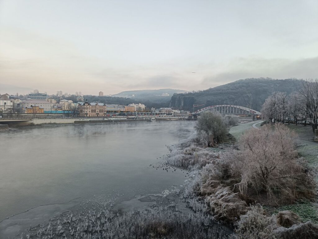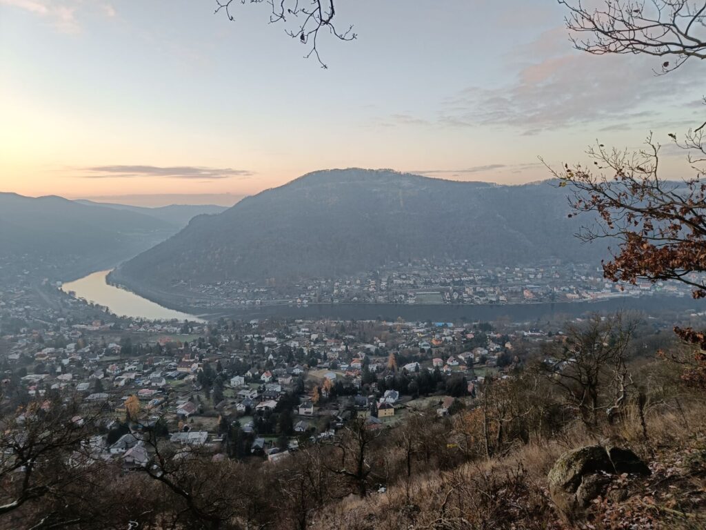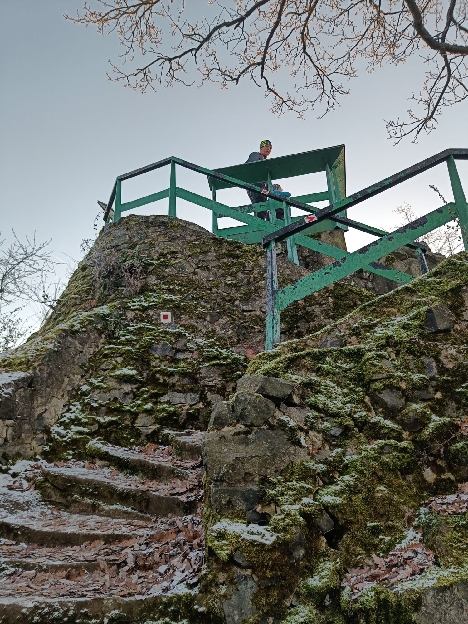 Po třiceti kilometrech jsem zase v Ústí v cíli, v domu Pionýrů. Pěkné místo na DNF by to bylo. Vyrážím ale s Mírou a Petrou přes Labe vstříc dalším dobrodružstvím. Hrad Střekov, vyhlídka Vysoký Ostrý, kde ty schody působí lehce namrzle. Sešup dolů, proti loňsku za světla.
