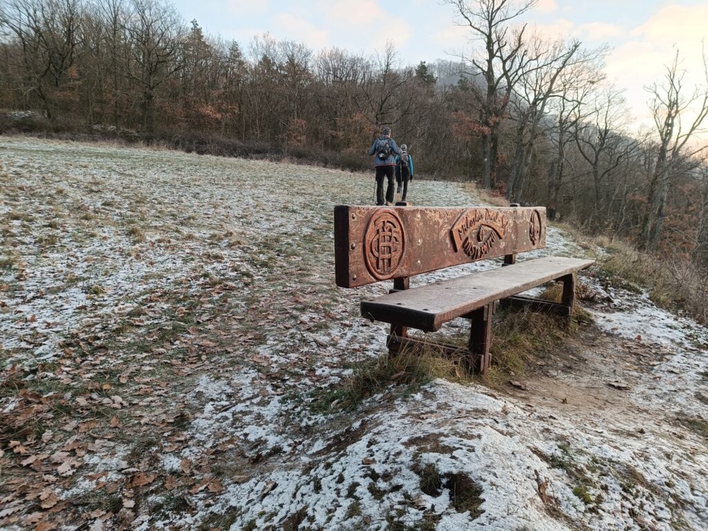 Výstup na Sedlo je za odměnu, zrovna mi to sedlo, rychlost slušná. Ostatním říkám, že se to zhoupne, místo vrcholu další stoupání a tak dále. Ještě kolem skal a jsme na vyhlídce. Ještě že jsem tak přeobečený, na tričku péřovka a punčochy. Dle Evy mi ladí k sukni. Čepice i rukavice ještě. Teplo je mi jak v pokojíčku. Prudký sešup, s nesmeky nejsem nesmělý, jde to rychle.