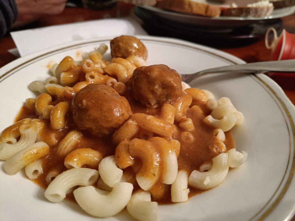 Padla dlouhá tma, která vydrží skoro do cíle. Sešup do Zubrnic, těším se na jídlo. Spotřebu na sto kilometrů mám poměrně velkou 🍽️ Dám si těstoviny a něco ze stolů. Další nabíjení hodinek Fenix 6S. Markovi půjčím kabel na mobil.