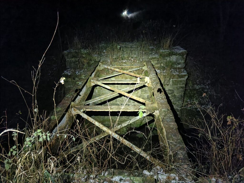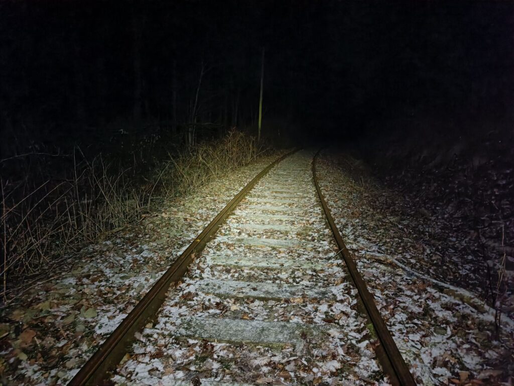 Jirka s Markem se mi trochu vzdálili. Teď se půjde po zrušené trati, pro ČSD mám mínusový bod. Ještě že nadšenci opravili úsek do Zubrnic. Najednou rozpadlý most, na styl baletky si netroufám, volím kombinaci po koleni a druhou nohou za šprusle mezi. Dvě čelovky, je to zase ta Lucie a Petr. Stromy, roští a další most. Tady jsou dvě širší traverzy vedle sebe, tak to se dá normálně přejít. Pražců je nepočítaně a zase občerstvení Zubrnice, hurá. Trochu bolí pravá noha, kvůli které jsem nešel Pováží, ale to už dojdu.
