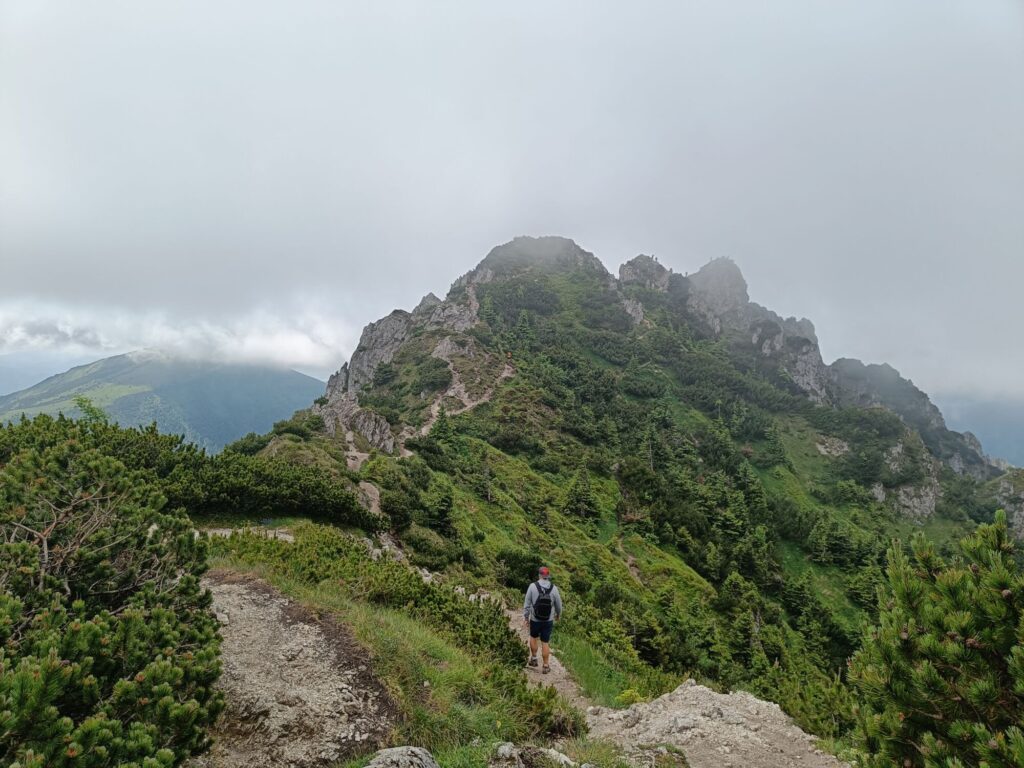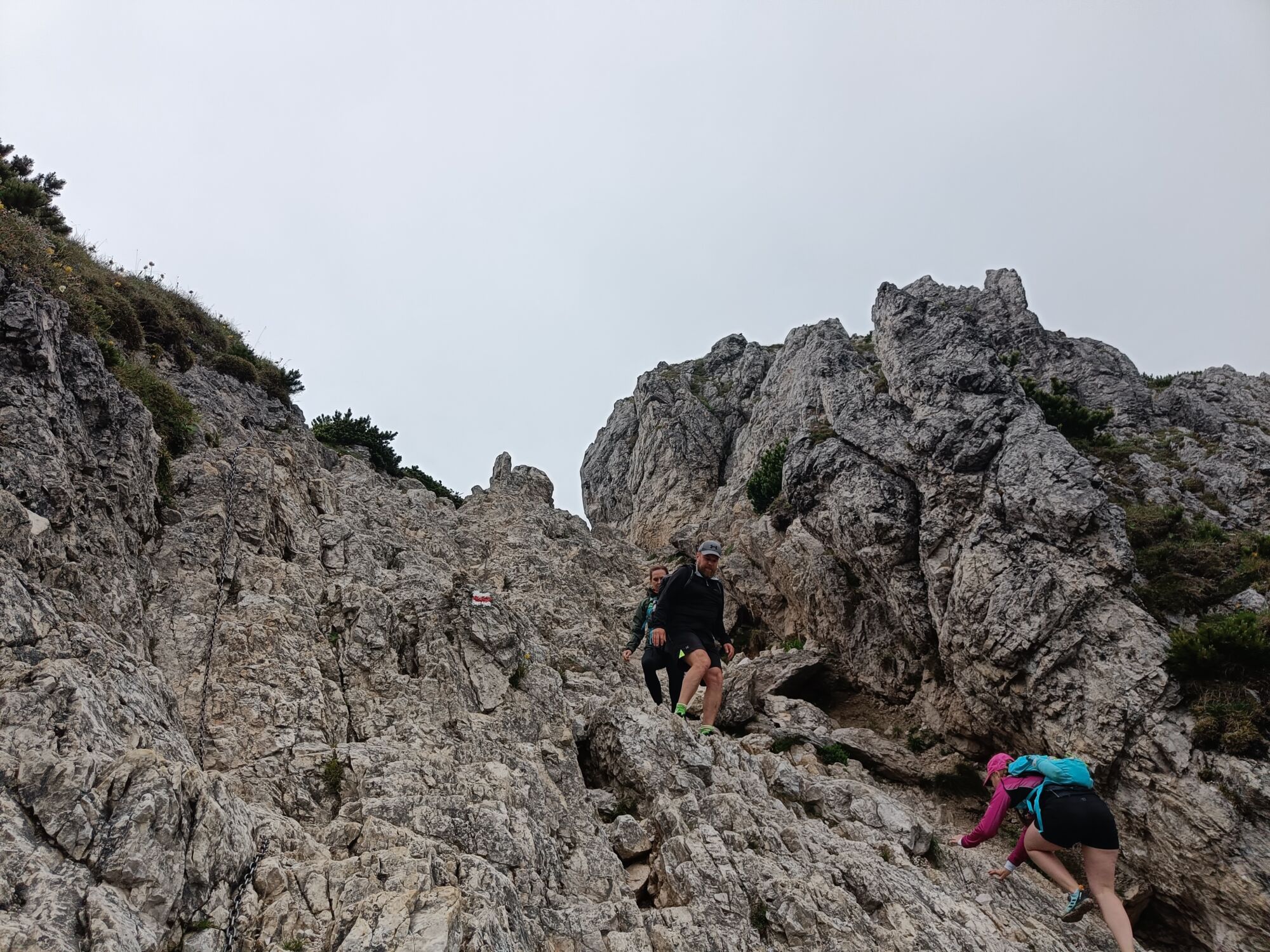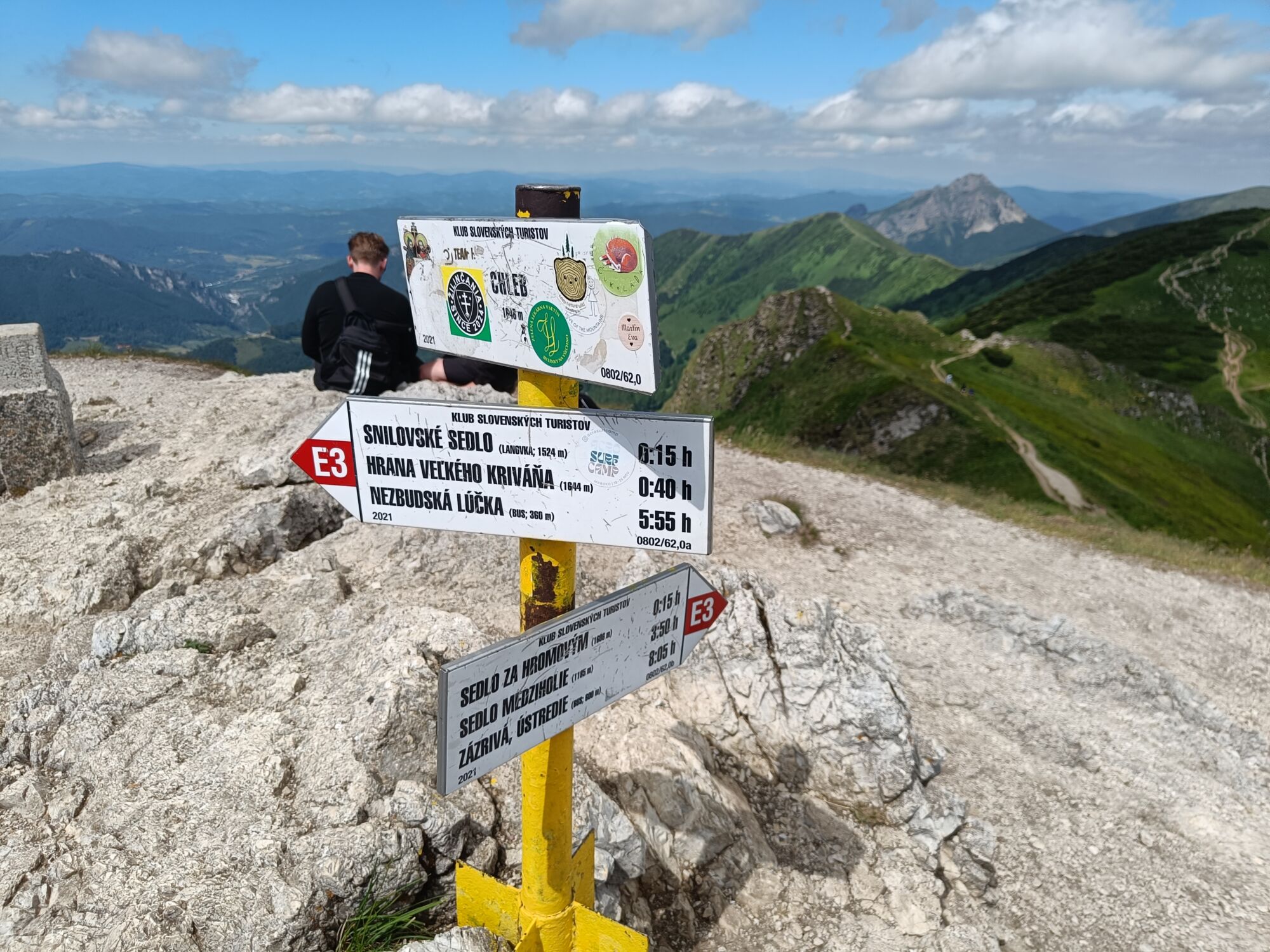 Vítr je příjemný, krásně to větrá. Ale ono se jde ještě přes Biele Skaly? Místy si v podstatě zopakujeme lezení po šutrech jak přes Rozsutec. Turistická značka a jen pět metrů skála nahoru. Pak mě z toho ztuhne holeň, křeč. To se mi za posledních deset let nestalo. S trochou magnézia to ale rozchodím.