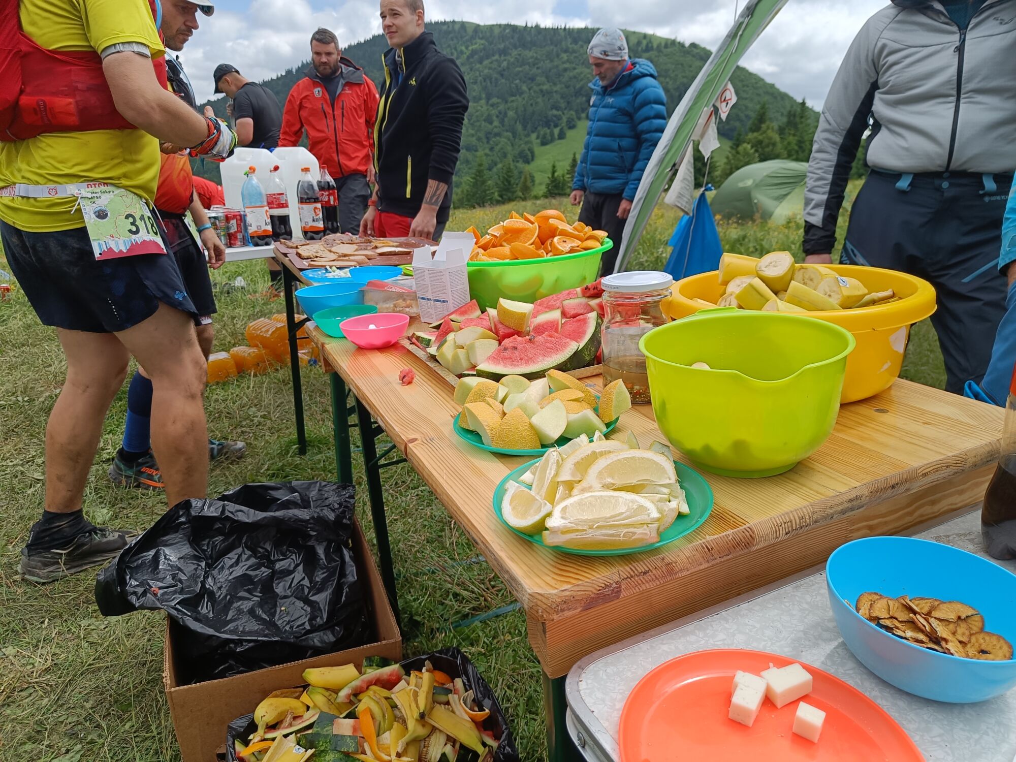 Sedlo Medzihronie, náskok na limit jsem si zvýšil na 1:23h, čas na posilnění na dobře zásobené občerstvovačce je. Na kopec Stoh mi to už tak nejde. Dál se to vlní a blížím se k chatě pod Chlebom. Náskok na limit 1:20h. Rozsekaný jsem výrazně míň než vloni. Počasí je lepší, není takové vedro. Takticky dávám jen patnácti minutovou pauzu a polévku. Někteří se cachtají v malém bazénku.