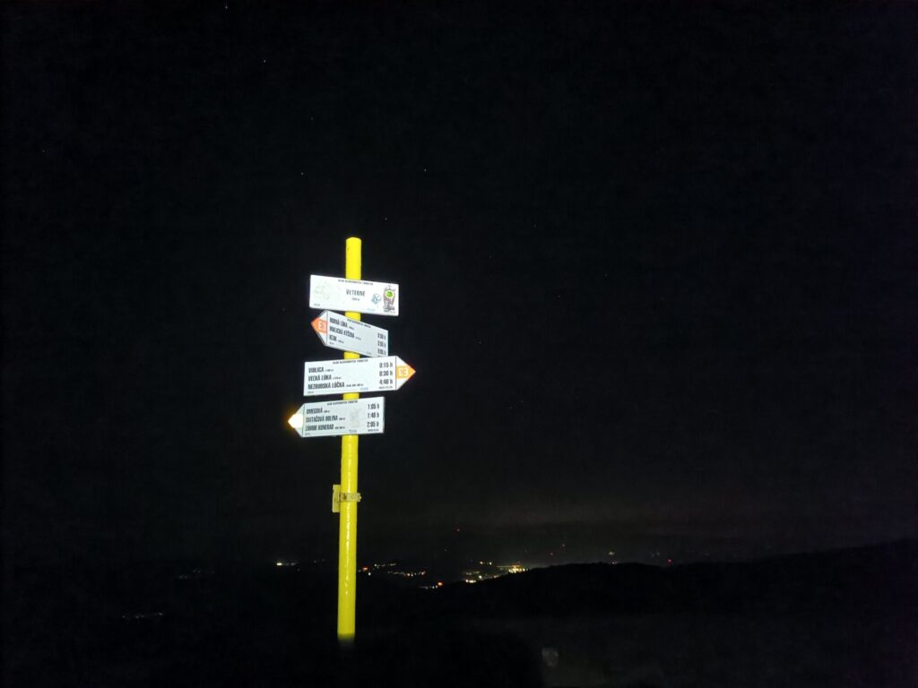 Vstříc lehčí půlce. Jak se to vezme, tady byla úprava trasy a naštěstí to bylo trochu kratší. Při odbočení na modrou značku mě předbíhá skupinka závodníků. Sice dobrá cesta, ale sklon se zvyšuje na tolik, že není daleko lézt po čtyřech. Šel jsem hrozně pomalu. Nahoře ale vidím tři čelovky a oni to pak balí. Já dávám nepovolený doping, řízek a zrychluju k vysílači. Místo pohybu náhlá smrt to byla už normální chůze alespoň.