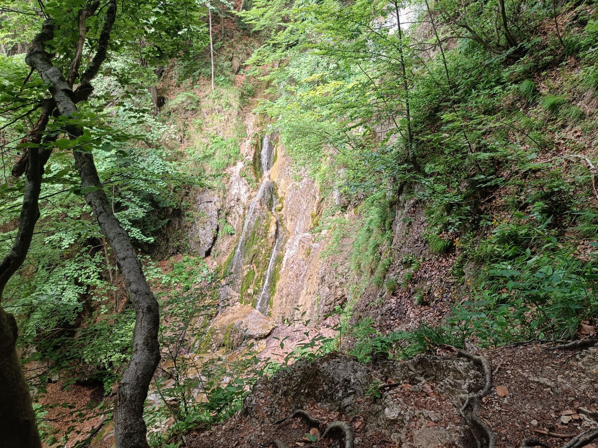 Dole na občerstvovačce Vrícko na kraji obce jsem poměrně happy. Když odcházím zbývá i do kratšího limitu 5:20h. A to by při sebevětším zoufalství mělo na nějakých jedenáct kilometrů stačit. Jako široká prudká cesta to neurychluje. Mrknu cestou na vodopád. Pak se vynořím z lesa a zase do lesa. Pekelné tři kilometry.